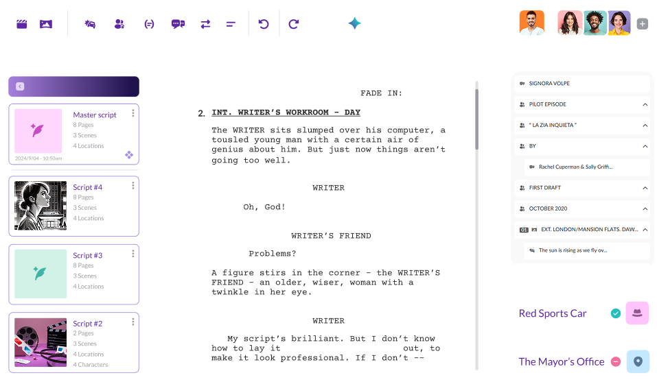 Write is more than a screenwriting tool. It’s your creative hub where you can draft scripts, spark ideas with collaborators, and get scenes production-ready. All in one place.